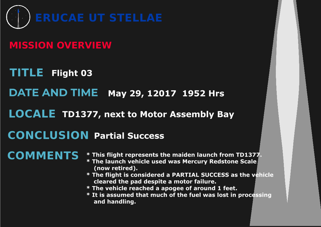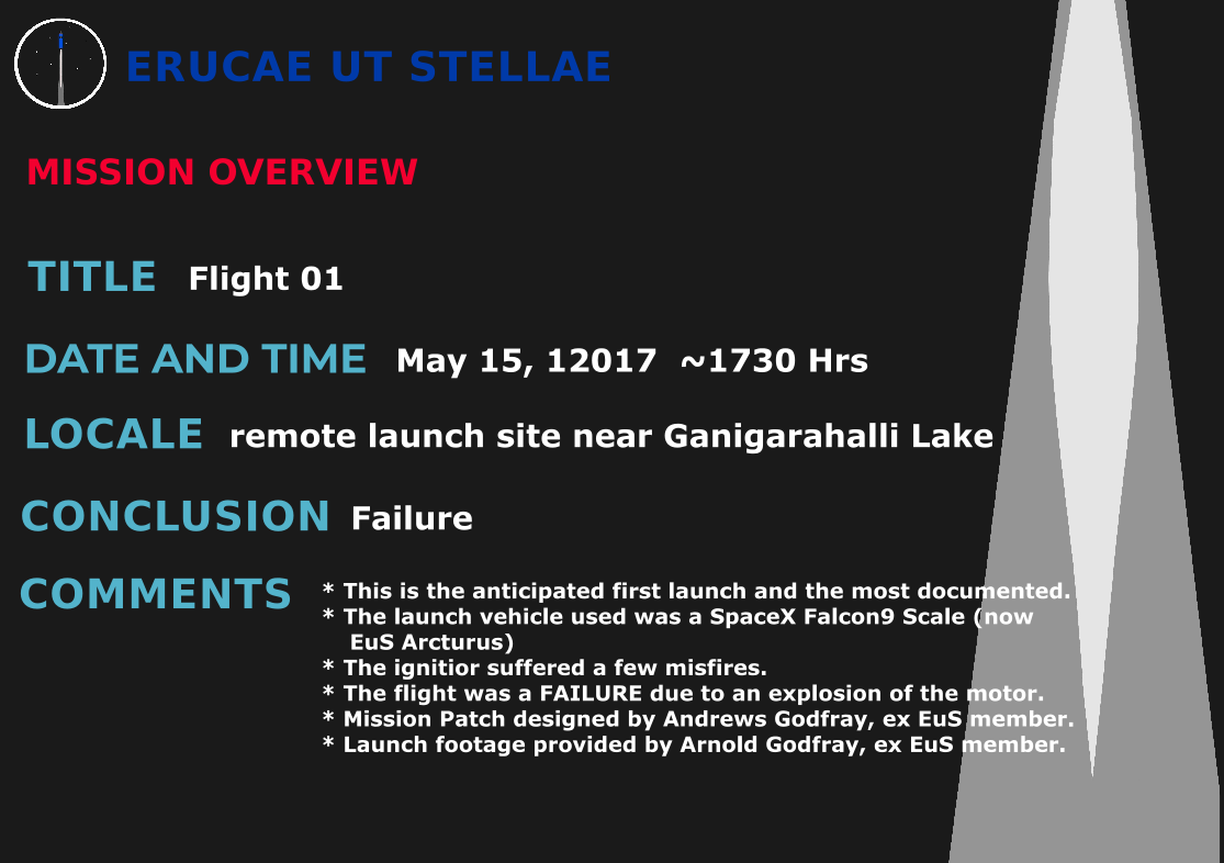 | 15th May, 2017 | Test Flight - 01 ..more info | Flight 01 Launch Video |